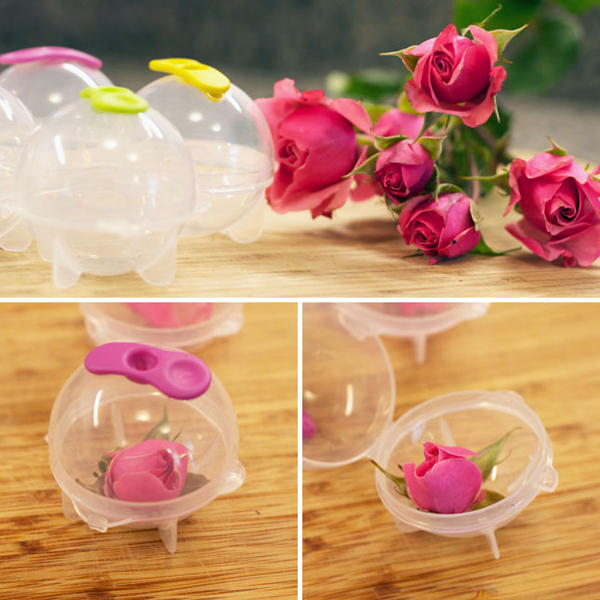 把鮮花洗乾淨後放到球形製冰盒(請務必確認鮮花沒有農藥或是其他化學藥劑),裡面填滿剛剛製作好的花茶,就可以放進冰箱中等待結凍,等到要喝的時候拿出來,放到杯子中,灑點砂糖或是蜂蜜,加一點冰水,就成了最舒服的夏日飲品了!