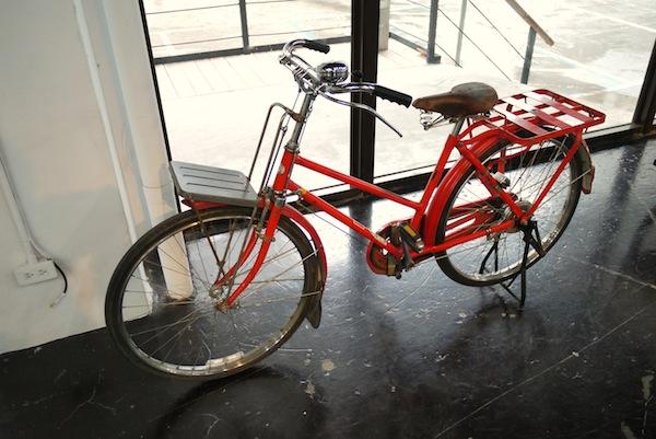 這台顏色鮮豔的城市單車也是來自日本,雖然看來有點年紀,不過實際上卻只有年輕的11歲。它是日本郵差先生送信時的座騎,前後貨架都可以裝載滿滿的信件,將大夥的思念準確地傳到對方手中。單車能夠在城市中自在地穿梭、輕快悠遊,不管是大街還是小巷都能夠一一深入,所以在許多地方還是選擇以單車作為送信的工具。