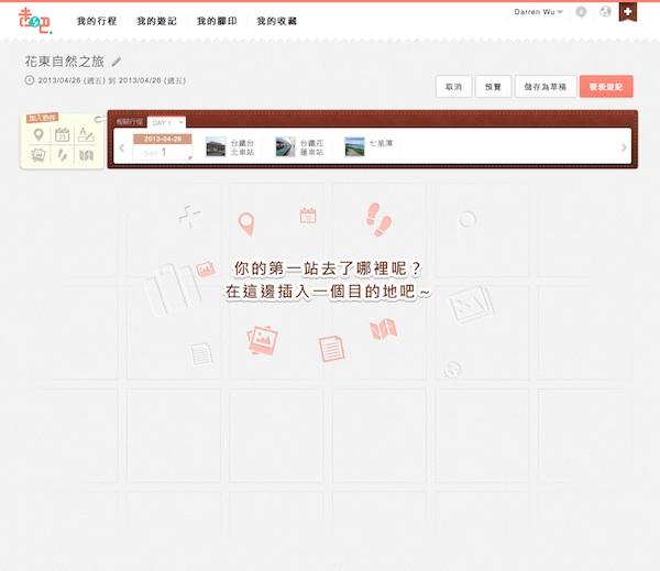 雖然玩得有夠累,不過回到家的第一件事是要將熱騰騰的回憶與大家分享,利用網站上「發表遊記」的功能就可以把旅程中的點點滴滴記錄下來,而且一樣有詳細的說明幫助大家更快上手。活潑俏皮的介面可以讓你自由發揮,照片想擺哪就擺哪,還可以插入地圖、日曆與文字,創造出一篇內容豐富又充滿個人風格的遊記。所以在這裡要提醒大家,出遊時記得要多拍照,才不會讓遊記看起來像篇作文喔~