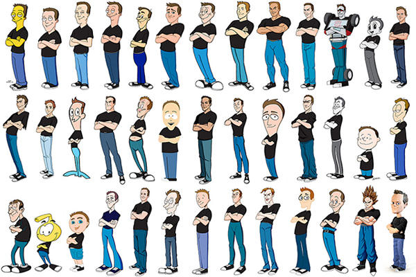 因為動畫誇張的肢體語言與色彩繽紛,加上時常討論的大膽議題,有人說動畫卡通的渲染力比真實演出的影集還來得大,漫畫家兼動畫師Kevin McShane 將曾經經手過或是看過的卡通影集風格,畫成共計 100 個自畫像,不只考驗了自己的模仿功力,更考驗了網友們的辨認記憶阿!