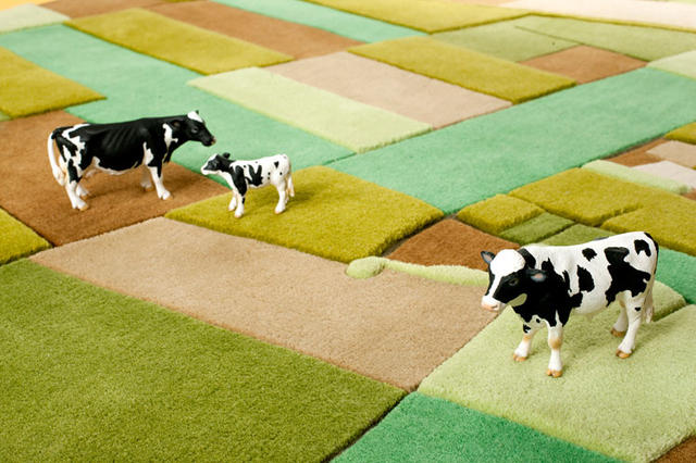 LANDCARPET系列的地毯元素主要來自於歐洲、美洲、非洲及荷蘭典型農耕地形,在篩選圖樣及色彩的過程中,皆是設計師Florian Pucher,一次次比對、簡化空照圖而成的精華,例如視覺感強烈的「LANDCARPET:荷蘭版」,多個狹長的繽紛色塊綻放其中,適切地呈現當地水塘及花田遍佈的特色。在材質揀選方面,堅持以100%紐西蘭純羊毛手工製作,藉由修剪不同高度的毛料,凸顯地貌的豐富層次,更讓地毯跳脫二度平面的框架,展現出高低錯落的立體效果,耗時費工的製作過程,如同版畫限量創作般,每款區域的作品全球僅限量88件,每一張地毯皆有獨自的編號,簡約而洗鍊的線條,展現北歐美學強調的極簡主義風格,讓居家環境回歸原始與自然之美。