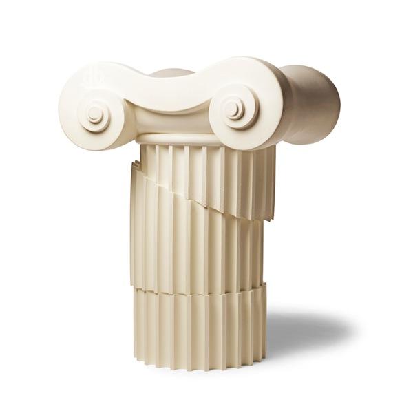 由設計品牌Studio65所設計的Colonna是師法於古羅馬建築中的愛奧尼亞式柱(Ionic),最大的特色是柱身細長(古希臘:上窄下寬/古羅馬:上下等寬)且有明顯的24條凹槽,柱頭的部份有一對向下卷的卷渦,線條簡單高雅,從古希臘時期流一直傳到古羅馬時期,廣泛出現在當時的建築中。這個流傳以久的經典柱子形狀被設計師改造成一般人每天都會接觸到的椅子,滿足了對古建築有愛,又沒辦法把自己家改造成宮殿、神廟的人的需求。(到底誰會把家裡改造成宮殿神廟啊!)