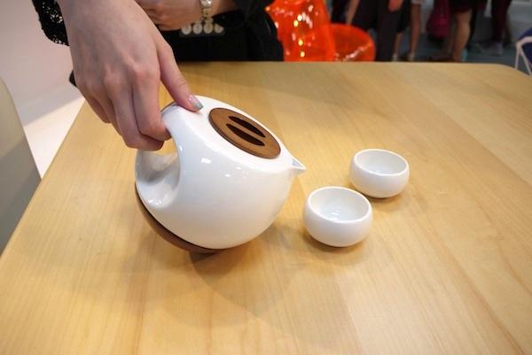 刻意加重的木頭底部雖然能夠防止茶壺傾倒,但在加水或洗滌時不也會增加手腕的負擔嗎?關於這個問題,設計師將解答藏在了木頭裡與屁股下!呃…是茶壺的屁股下。如同剛才所提的,底座內用來加重的材質為金屬,而茶壺的底部則嵌有磁鐵,在洗滌時能夠將其分離,大大的減輕重量。