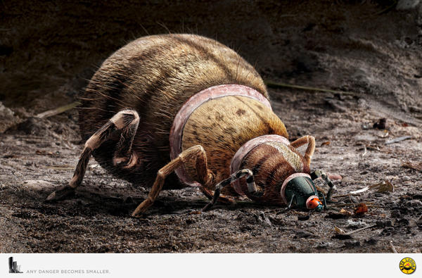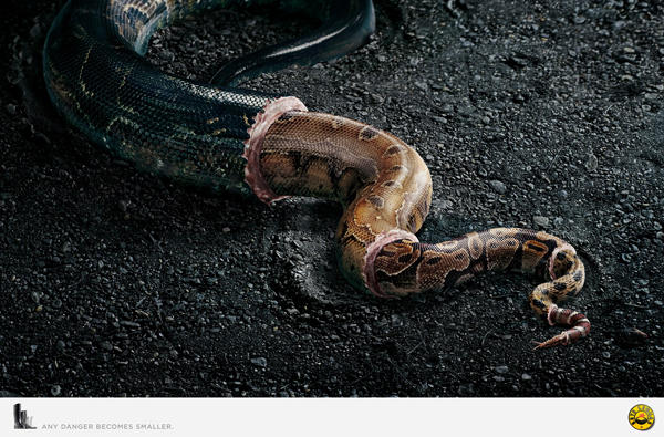 With Sete Léguas 雨鞋品牌在今年的 4 月釋出了幾張驚悚萬分的廣告文宣,藉著巨大的蛇、蜘蛛、鱷魚漸漸縮小變成比較無害的動物昆蟲,表達了一個很單純的目的:「任何危險在穿上我們的雨鞋危險都會變小」,好的雨鞋不只可以讓你穿起來好看、在雨天行走無礙,更好的雨鞋甚至幫你杜絕危險,如此直白的廣告雖然看起來有點可怕,卻著實有打中消費者的心吧!