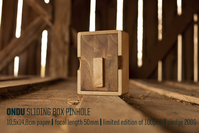 目前 ONDU Pinhole Camera 系列還在 Kickstarter 上募資,不過「手工木造」+「底片針孔攝影」這麼有戲的好東西,想當然爾早早就達成目標金額了,據說第一批人可以用 50 美金的價格換得一台 ONDU 135 Pocket Pinhole 相機,換算起來並不貴,可惜限額 100 名早已額滿,不然大編也好想去衝一下喔~~