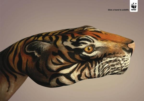 相信大家對「人體彩繪」這個名詞應該一點都不陌生,但至於人體彩繪的好朋友「手部彩繪」,大家可能就有點不太了解,其實他們兩者的概念是一模一樣的,都是在人體上作畫,只是將範圍縮小成雙手與手臂。雖然作畫面積變小,不過靈活多變的雙手給了人們更大的想像空間,反而更加有意思!不如就來欣賞義大利手部繪畫藝術家Guido Daniele為世界自然基金會(WWF)所繪製的廣告海報吧~