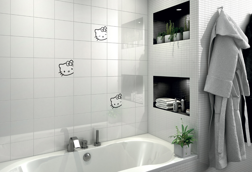 A: 以 Hello Kitty 為品牌經營主要客群鎖定在粉絲,通常是消費者到店裡參觀後很喜歡,再帶著設計師來討論規畫家裡的磁磚空間。Hello Kitty 磁磚共有 3 個主系列 14 款磁磚,風格從活潑甜美、輕鬆簡約、自然復古到典雅華麗都有,就算不是 Hello Kitty 迷,一定也會發現適合你家的磁磚。如最新推出的樂活木紋磚,Hello Kitty 低調隱藏在木紋間,很適合走自然風的家,又比木板環保且不怕潮溼、容易清潔保養。價格方面因為百達麗主打的是磁磚 Décor 功能,屬於較高價位。素磚一坪約在一萬上下,若加上腰帶、花磚等 Décor 則會到一萬四~五以上,好消息是董事長認為百達麗今年營運漸趨穩定,今年做產品八折及特價活動。裝飾為主的造型磁磚,不必整面鋪貼、以局部拼貼就能帶出空間的質感,但如果你喜歡強烈的風格,口袋也夠深,想整面貼也可以啦。