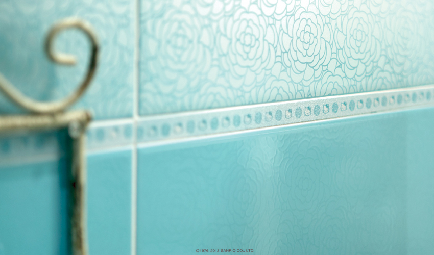 A:由 20 x 20cm Basic (基本)系列到一片五萬元的頂級 Swarovski 水鑽花磚 (由奧地利 Swarovski 原廠手工貼上水鑽),因為風格、價位的不同所以大家的選擇也不盡相同。有單買幾片磁磚回去裱框做收藏的,也有整個住辦都是以 Hello Kitty 風格打造的超級粉絲。2013 年新產品山茶花系列就推出時尚的 Rosa 粉色 (又名 Don’t call me Baby Pink) 以因應更成熟廣闊的都會市場,讓大家知道 Hello Kitty 除了可愛也能很有個性並兼具時尚高雅的。
