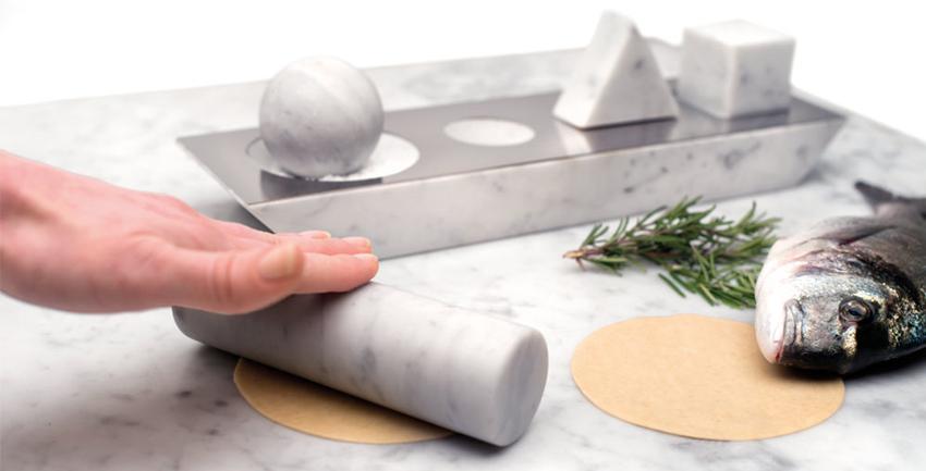 球形的香料研磨器、三角型切割刀、正方體帶有波浪的用來去魚鱗、最後配上桿麵棍,義大利超過五十年歷史的設計公司 Opinion Ciatti 推出的 Elementare 廚房料理工具,以基本的形狀帶出基本的功能。特別以大理石材質打造,不單單是為了觸感或美觀,石材的重量讓你在研磨、桿麵時輕鬆不費力,最棒的是石材的毛孔小吸水率低,所以不用擔心料理後清洗不掉食物的腥臭味,是對氣味敏感的你最佳選擇呢!
