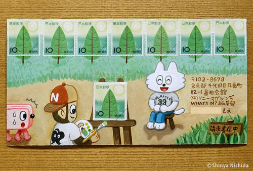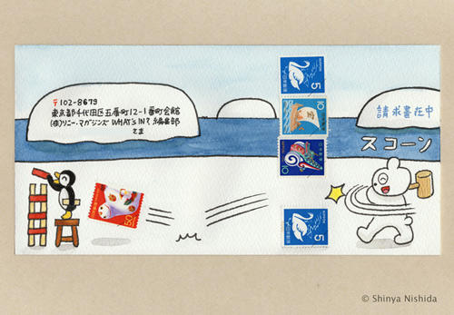 SOHO 族除了要擔心每個月接的案子多不多,價碼夠不夠養活自己,更重要的是自己做的案子到底要多久才可以收到錢,每個月寄出的請款單相顯得十分重要,對於插畫家或接案族來說,這可都是救命錢阿!日本插畫家 SHINYA NISHIDA 自從 2009 年開始,把每個月的請款單信封配合上郵票畫上手繪圖案,讓討錢請款這件事變得比較活潑,不知道這樣收錢速度有沒有比較快呢…