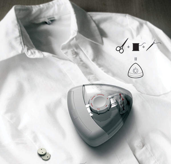 由韓國設計師 Jo Yeon-Jin 設計發想的這台鈕扣釘書機,你只要事先把線、電池裝進機器中,就可以直接使用了,使用方式也簡單得不得了,只要把鈕扣對齊好,接著利用中間的調整鈕調整鈕扣縫孔的間距,按一下就可以把扣子縫好了…,是說如果這個機器早點發明出來,那編者應該可以少被刺個幾下吧(淚)