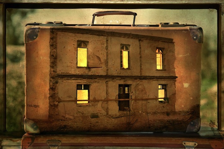 Yuval Yairi 特別選用老舊的提箱做改造,將過去在旅行中累積的照片呈現在上面,彷彿每個皮箱都代表某個值得回憶的瞬間,當然這些回憶只存在於 Yuval Yairi 的腦子裡,不過老舊皮箱加上泛黃照片所營造出的情感,卻是每個人都能感受到的。