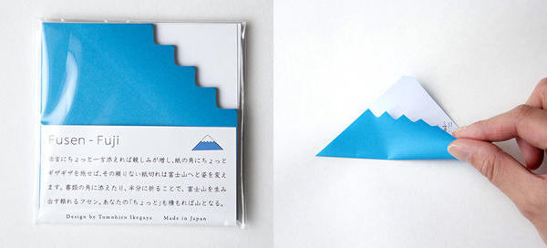 ▲乍看之下頗普通的便條紙,對折之後就變成了 Q 版富士山,貼在白色的紙上面也很有富士山的效果。(購買處)