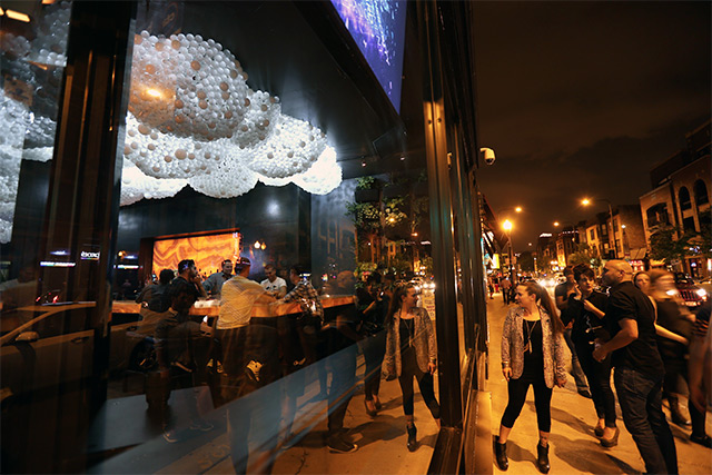 Cloud Ceiling燈泡雲現在是芝加哥一間新開酒吧的招牌裝置,看路過人們忍不住盯著店內瞧的模樣,看來這朵大電燈泡不只可以和店內的人互動,還能順便吸引人家進門消費,意外地兼具招財貓的功能了說喔XD