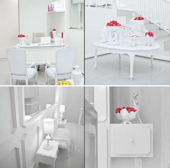 這間專賣店的驚艷之餘,我們發現在他們的雪白世界裡,甜點不單單只是一個包裝或是一個貼上標籤的商品,正確來說,它已經是一個藝術,一個令人忘不了的創作。從設計師在不同空間角落置入的瓢盆,搭配整體的典雅韻味,就好像一件衣服,從頭到尾,完全手縫,考驗設計師的功力同時,也挑逗著我們的賞析品味。