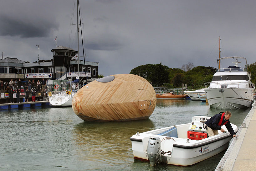 身在吵雜的都市叢林,是不是常常在你想認真工作時,有人會在旁邊吵鬧,請你做這個做那個,有完沒完的?這樣你會不會非常渴望有個屬於個人的工作空間,不要任何人打擾,這麼一來就可以順利且快速的完成工作。exbury egg 是由英國 PAD 工作室、美國的 SPUD 設計團體和英國的藝術家 Stephen Turner 一起打造的水上個人工作空間。