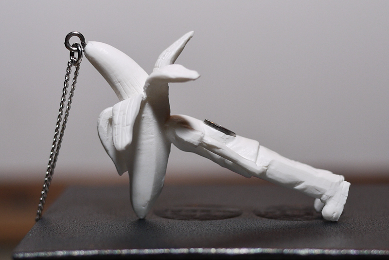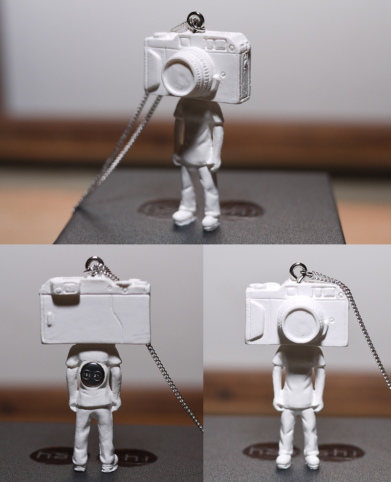 小人物系列項鍊最迷人的地方在於細節的表現,從小小的旋鈕到背面的散熱孔,甚至是襯衫腋下處的皺摺,都是由師傅以手工修整雕塑。