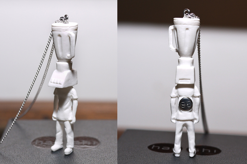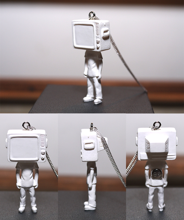 初看到良事設計的小人物系列項鍊時,就覺得這是個介於可愛和文青之間的有趣設計。以常見的生活物品做為主角,並取名為"蘋果人"、"電視機人",乍看很像年輕小女生會喜歡的可愛玩偶項鍊,但偏偏它又缺少最重要的歡樂元素---「色彩」,自然的樹脂白色搭配未經打磨的樸拙表面,重要的細節特徵則刻劃地相當仔細,很有幾分日系雜貨的調性,這就又不是隨處可見的平價塑膠糖果色項鍊可以比擬的了,所以說這系列的項鍊雖然自稱"小人物",但可不代表就做得很隨便囉!