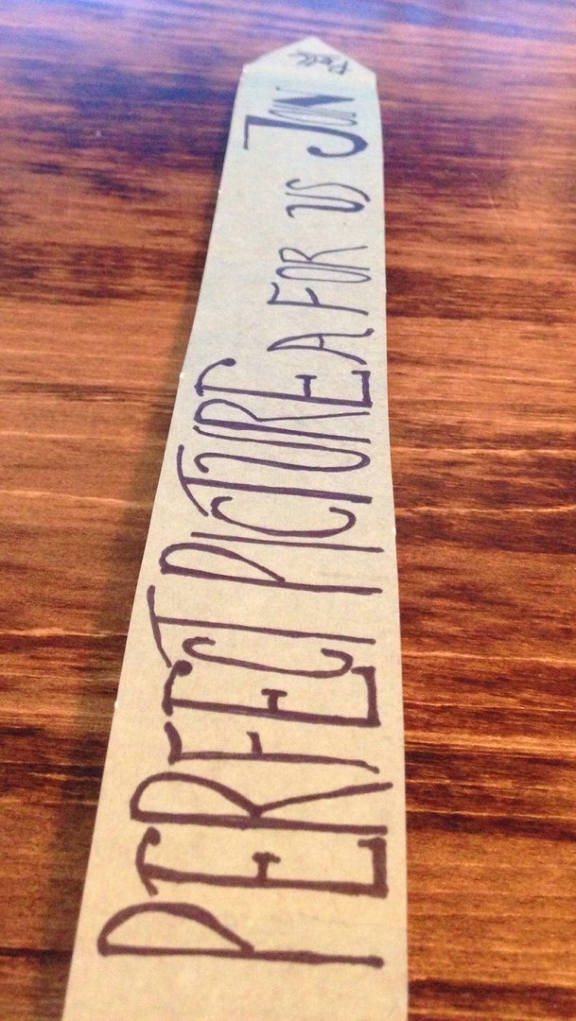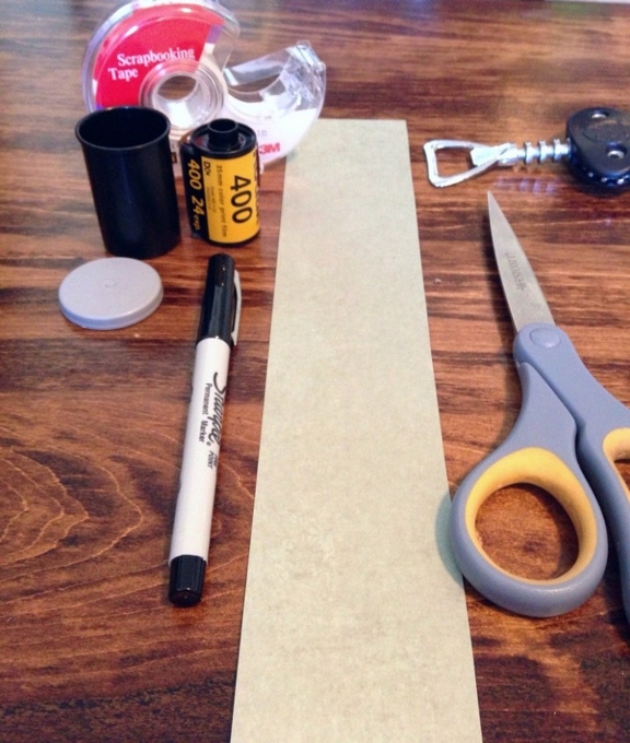 剪出剛才畫出的輪廓。記得折上其中一端然後寫上「拉 pull」,避免你的賓客把紙張捲入底片罐內。