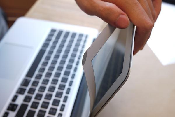 MBA的螢幕又不能觸控,為什麼要貼保護貼呢?實在是因為MBA為了要實現極輕薄的設計,所以顯示器外頭所覆蓋的材質較輕較軟,以及上下蓋密合度相當高,以致於鍵盤上的油漬汙點容易在關閉電腦時沾附到螢幕,有了螢幕保護貼就不怕螢幕刮傷,就算拿菜瓜布來擦拭螢幕都不會心疼(但依舊會刮傷!)。而且主打的防眩光功能可以讓上班族、學生族在使用時眼睛更加舒適,雖然亮度會稍微減弱一點,不過藉此保護眼睛才是更重要的呢~