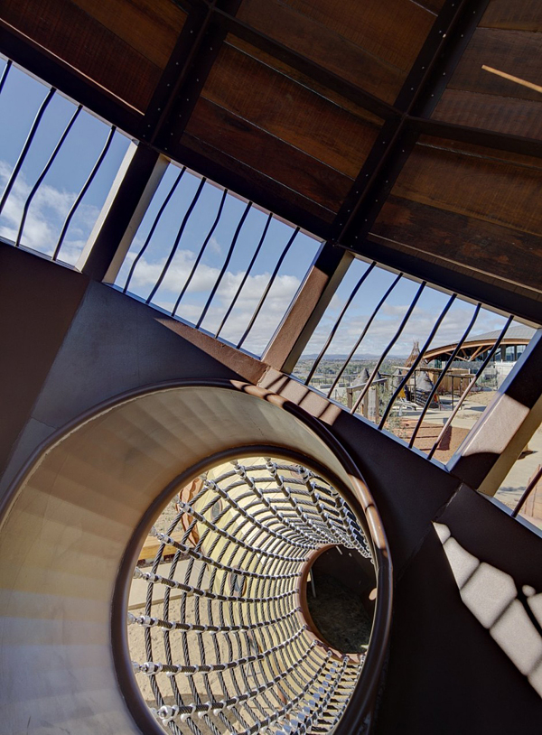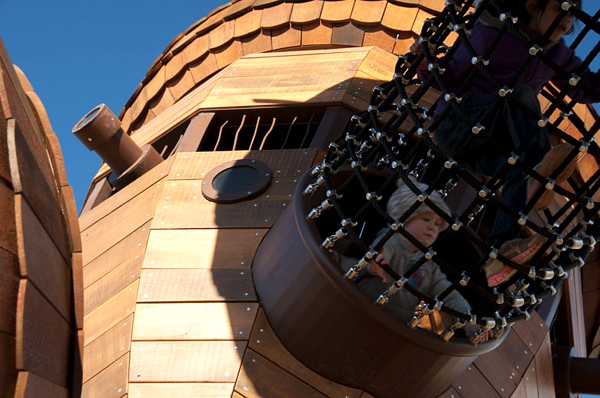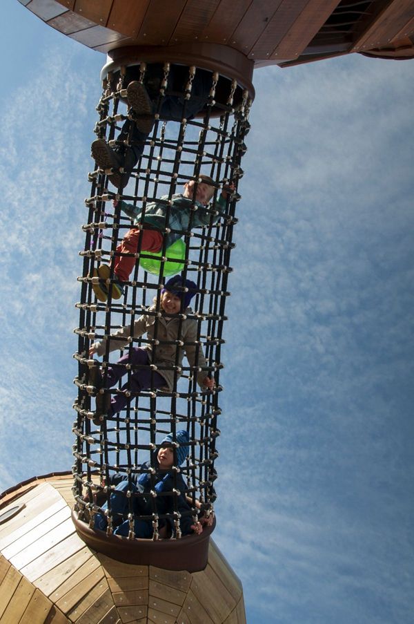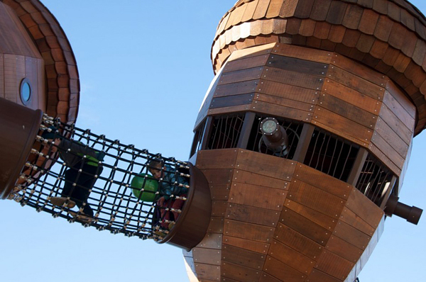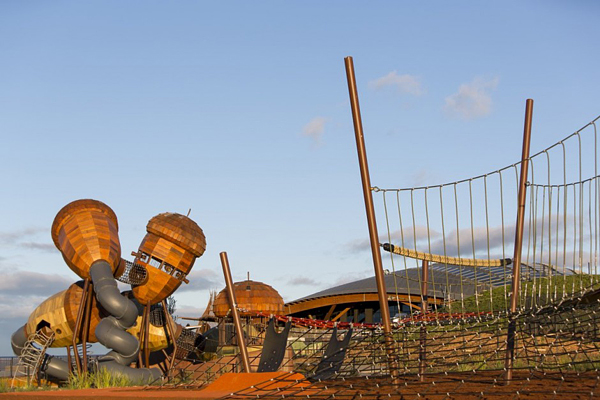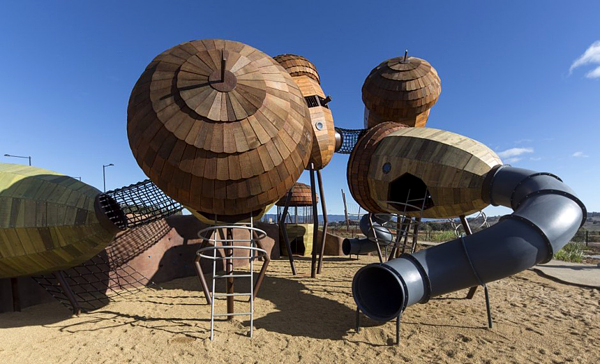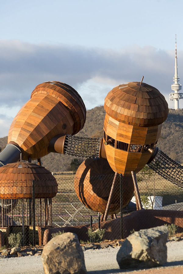 臺灣常見的兒童遊樂設施不外乎就是溜滑梯、鞦韆或是單槓之類的,頂多在色彩上做點花樣,型態幾乎沒甚麼大變化,Taylor Cullity Lethlean 在澳洲坎培拉的國家樹木園中建造了一座超有趣的遊樂設施,將常見的器材們變成超大的橡樹果實,果實內部做成船艙,果實與果實之間則用鋼索做成通道,讓小孩子可以在之間到處爬上爬下「串門子」,從外到內都能讓小孩們為之瘋狂,絕對會天天玩到不想回家的啦!