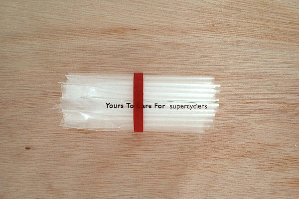 被印上「Yours To Care For Supercyclers」的透明吸管,都可以變成一支葉子、一朵小花的花器,這樣輕巧的回收花器可改造的範圍變得更廣,你可以好幾支綁起來,或是只取一支貼在牆壁上,只要任何能達到少用吸管的功能都可以是改造吸管花器的靈感,或許哪天你用完吸管之後先不要丟,拿來改造一下增加室內綠意也是不錯的居家裝飾好主意喔。