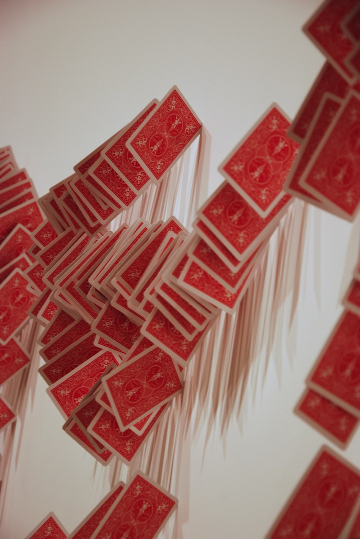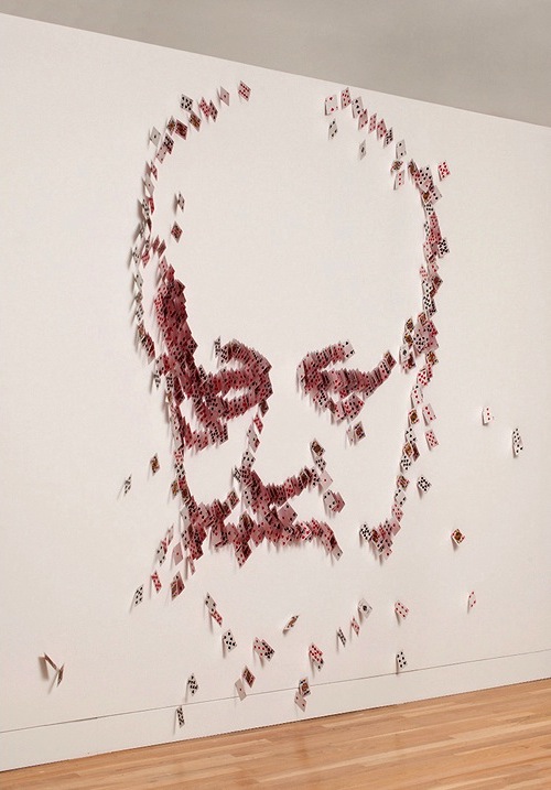 從早期的賭神系列到好萊塢各種電影,撲克牌向來都是男人們用來制敵兼耍帥的工具,更是魔術師們表演的基本項目之一,Glenn Kaino 認為,藝術家在某種程度來說也算是魔術師,兩者都是利用專業的技巧手法在迷惑觀眾的視覺習慣,於是選擇以魔術師常用的紙牌當作素材,創作結果也確實很令人驚喜,但是只有一尊實在看不過癮,如果 Glenn Kaino 可以用同樣的方式臨摹出歷來知名的魔術師,並統統排在一起,應該會是相當另類的肖像畫展覽吧!