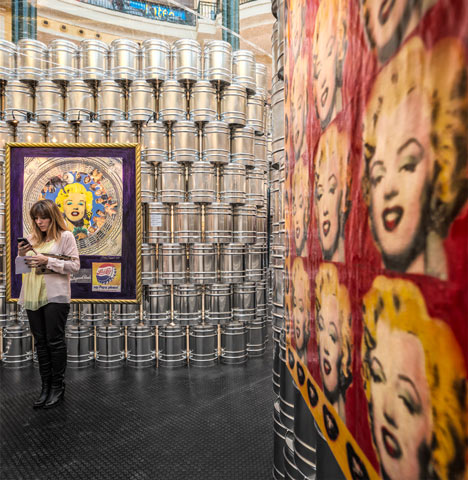 購物中心和百貨公司絕對是夏天避暑的好所在,不少人抱著「逛逛不用錢、吹冷氣也不用錢」的想法來消磨時間,不過老是漫無目的瞎晃其實也挺無聊的,葡萄牙一家大型購物中心前陣子在室內舉辦安迪沃荷的短期展覽,引用經典的金屬罐頭來打造整個展區,共展出 32 幅安迪沃荷的經典作品,讓夏日的百貨公司 冷氣爽爽吹 之旅變得既歡樂又具正面意義!