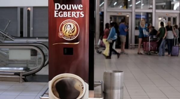 自動販賣機裡頭販售著熱騰騰又香噴噴的現煮咖啡早已經不是新鮮事,但在南非約翰尼斯堡的O.R. Tambo國際機場出現一台機器不需要你我身上的任何一分錢,就能提供一杯現煮咖啡給大家提提神。這麼好康的活動來自南非咖啡品牌Douwe Egberts為了要促銷自家的咖啡而推出的自動試喝機,但想喝到免費咖啡並不是排隊就能拿到,而是需要你張開血盆大口才行!