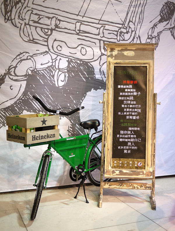 從來只有聽過「禁止飲食」「禁止攝影」,哪個藝術展這麼跳,居然大方地邀請邀請人們一同輕鬆作樂?在華山的《Heineken LIGHT Creative Hotspot創意熱點》特區就是一個這麼歡樂的場合!海尼根 Heineken 向來給人率性不受拘束的形象,除了令人印象深刻的廣告之外,也常常舉辦各種藝術活動,這次趁著新引進台灣的 Heineken LIGHT 系列,特別與幾位國內外前衛藝術家共同打造複合式藝文空間《Heineken LIGHT Creative Hotspot創意熱點》,完全不同於傳統藝廊的謹慎和沉靜,在藝術家們前衛活潑的作品環繞之下,你可以單手拎上一瓶 Heineken LIGHT,然後斜倚在吧台邊觀賞整個前衛藝術空間,感覺都快被自己帥到睜不開眼了啦XD