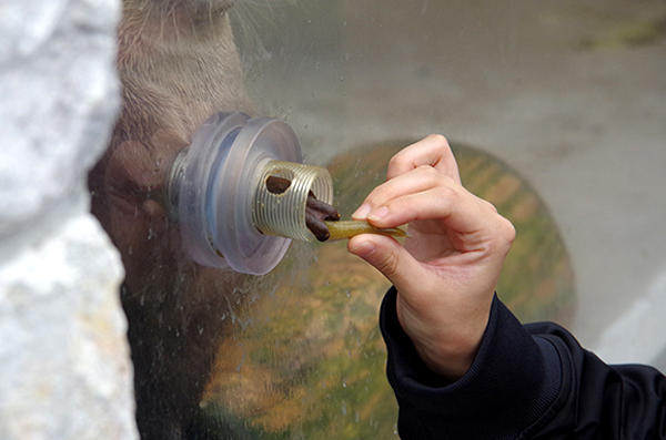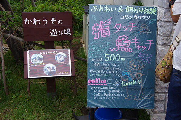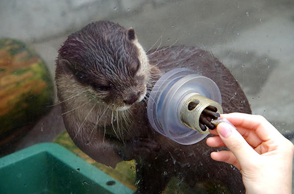 園方會事先準備餵給小水獺食用的小魚,而且等不到你把小魚拿到窗口,小水獺就會立刻迫不及待的把手伸出來,這種超有人性的小水獺叫做亞洲小爪水獺,體型非常小,而且常常做出超可愛萌死人不償命的動作XD