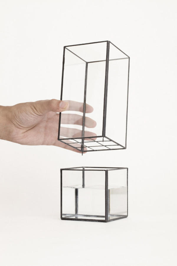 由日本設計師妻沼大介與山田研一共同創立的品牌 10¹² 其中的數字靈感來自於每天細胞分裂的數量,就像是每天都有微小新事物產生的想像。在一個最簡單的幾何方塊中,去除了泥土,以水當做植物的營養來源,少了植物原本該有的樣子,卻多了幾分展示綠意的優雅。