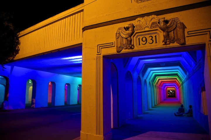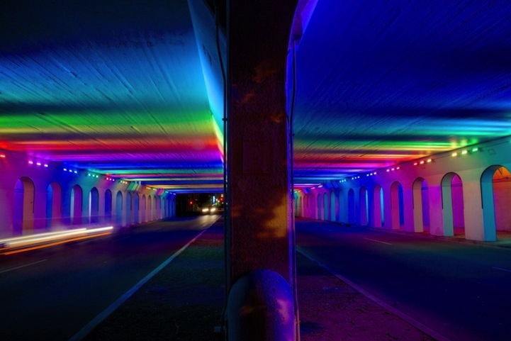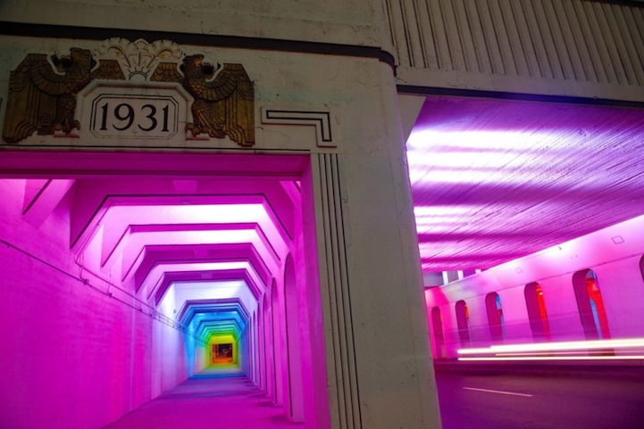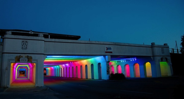 對於夜歸族來說,如果非不得已,實在不想走在老舊的地下道,但是如果有這樣的通道,就算得多繞點路也會想來走一走!位在英國伯明罕市 1931通道的燈光藝術,藝術家 Bill FitzGibbons 在整條通道安裝了上千顆 LED 燈泡,配合電腦運算可以有 1,600 萬種組合,讓夜晚的伯明罕市點綴出一絲藝術時尚氣息。