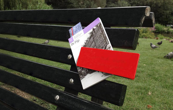 名為「pivot creative」的設計工作室,將公共長椅稍微加一點設計,不需要把整套椅子換掉,只要加上紅色的金屬夾就好,讓遊客可以把看過的雜誌、報紙或是文宣夾進這個紅夾子中,這些紅夾子可以在阿姆斯特丹的九座公園中看到,希望透過分享拉近人與人之間的互動關係,讓紙本的傳播力在網路盛行之後再度復活,而且真正達到了「我看完換你看」的概念。