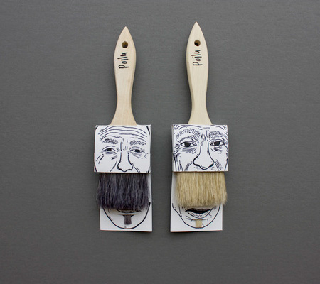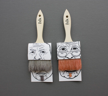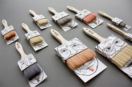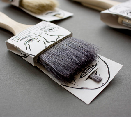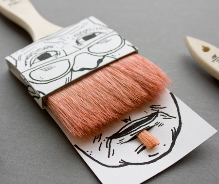 平凡無奇的刷具,在藝術家的巧手設計下,居然變成創意十足的商品,除了大把的刷子充當插畫人物的鬍子,小隻的畫筆刷也變成下巴上方的小鬍鬚。