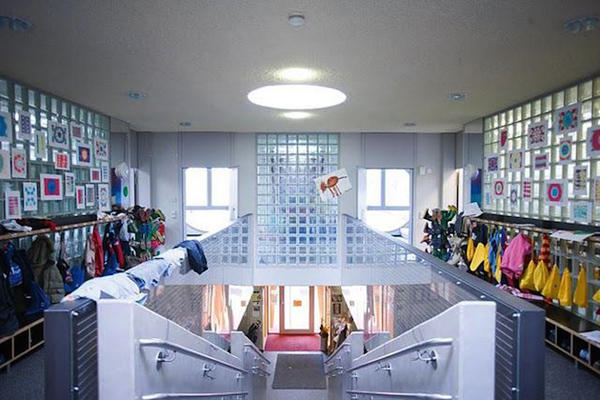 這所在德國 Karlsruhe 的小學擁有巨大貓咪的外型,曲線的建築設計讓小朋友映入眼簾的即是創意,裡面和一般的小學沒有什麼不同,兩個大大的貓眼是二樓的窗戶,最特別的就是貓咪的尾巴,居然是一個溜滑梯,回家的時候只要包包丟了溜下去就可以到一樓,這…這根本連上班族都好想在裡面辦公的阿!