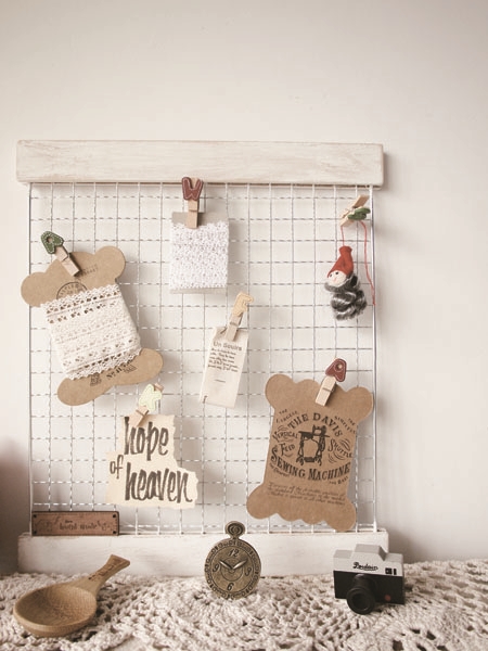 手作訴說生活故事 將自己的生活融入到風格中,是日式鄉村風的一大特色,透過一些手邊小物並進行改造,家有自己的味道也訴說著生活故事。像這個就是Aiko運用烤肉架所改造出來的,既可當留言板,也能做收納緞帶的架子。