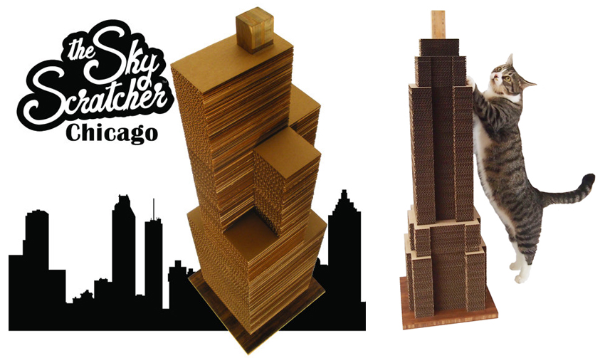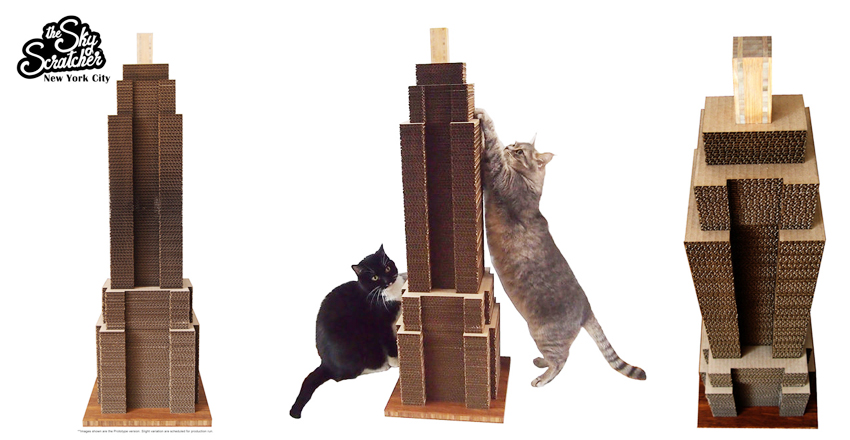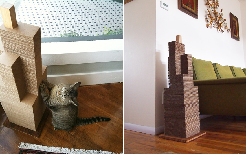 給愛貓一塊滿意的貓抓板,不只是搶救沙發大作戰,對於貓咪的爪子也很有幫助。來自美國的 Mike Estes 在 Etsy 發表的 The Sky Scratcher 摩天大樓貓抓板,利用貓咪喜歡的粗糙材質中最便宜的瓦楞紙板直立堆疊出摩天大樓,讓貓咪可以拉長身體伸懶腰同時瘋狂的勾拉磨爪。製作方法簡單的 The Sky Scratcher 你也可以買幾片瓦楞紙板自己蓋出 101 大樓貓抓板,別忘了灑上一點貓薄荷,讓貓咪更快適應牠的新玩具。
