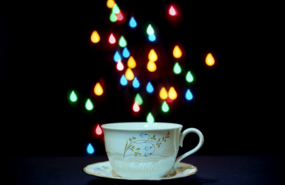 除了利用散景強化你的主題,你更可以試試看更多的創意點子。上圖就是一個例子,「水滴」般的散景倒到一個杯子裡,這些水滴也同時是照片的一部份!嘗試對焦在前景的光源,如咖啡廳的燈、聖誕燈泡、城市的燈光,並利用散景做出類似的效果 – 像是「水滴」落在傘上、「仙女」般的散景在盒子中呼之欲出、「濃煙」般的散景從一杯熱氣騰騰的咖啡中飄出,試試看吧!