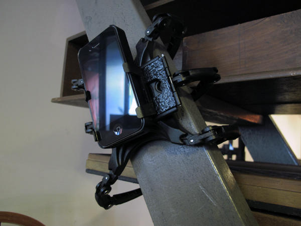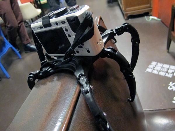 六爪金剛的每隻腳都有小倒勾,加強抓住固定點時的穩定度,而且造型也因為這小倒勾變得好酷又好帥阿!倒勾+防滑夾墊+穩穩鎖緊的關節螺絲,讓六爪金剛就算是整個垂直抓著椅背,也絲毫沒有要鬆手的感覺,一根平滑的木樑一樣也是抓得穩穩的,如果需要近距離拍攝,只要稍微調整腳的開闔,比三腳架還要好用百倍!