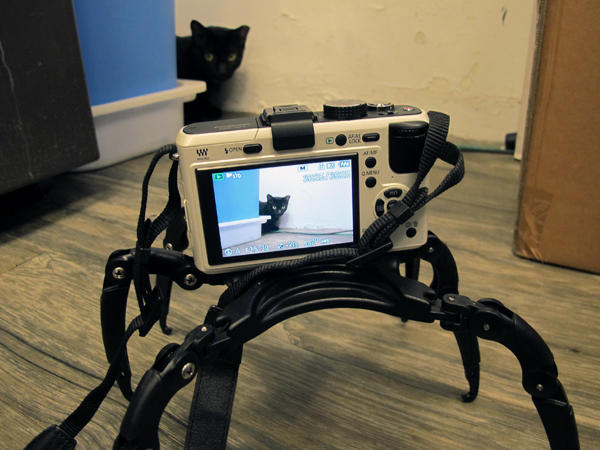 正因為隨便你凹折的蜘蛛腳,如果你想拍直的,也只要用點巧思與巧勁,就可以輕鬆又放心的把相機手機擺成直的,拍照的時候不用喊「看這邊」、「說起士~」,目光根本自動交集到這裡,實際測試發現對貓咪也很有用耶!(明明只是嚇到XD)