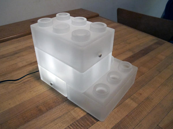 ▲小小的圓形白色按鈕就是開關,俗話說得好:「魔鬼就藏在細節中」,就算是開關也要設計極為低調,不讓開關破壞的積木燈的可愛外型