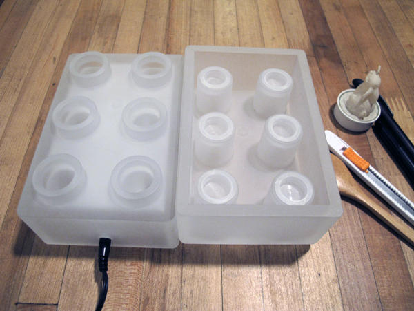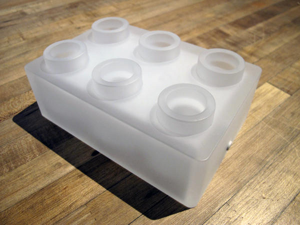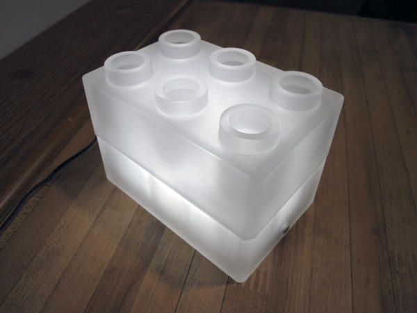 一組 BLOCK 積木燈總共會有兩大塊積木與一組變電器,上面的六孔設計讓你隨心所欲的放入筆、刀具或是當做花器使用,照明的開關則是隱藏得極低調,隱身在白色半透明的積木中。照明方面雖然可能無法做到一打開開關就光亮滿室,卻也多少讓周遭的氣氛變得些許浪漫,藉由按下開關次數調整三段式的開關,讓積木燈多了更多可能。