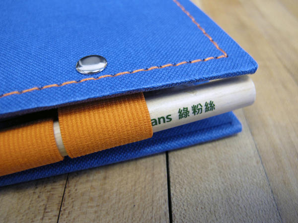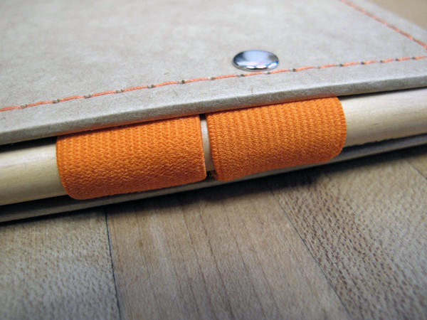 ▲筆記本兩邊的彈性帶筆插設計不只是可以插筆而已,還肩負著把筆記本好好闔上的功能