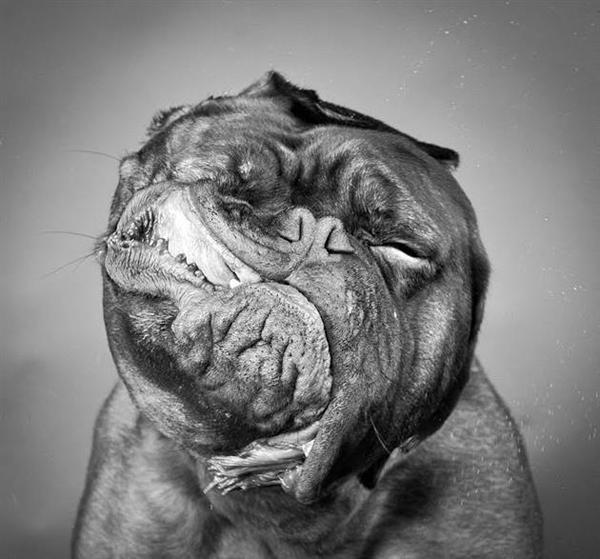 看完照片深深的感覺到狗在狂甩讓皮都四散亂飛的時候應該也滿放鬆的,看每一隻表情都充滿了由裡而外的輕鬆感,看來狗狗在胡亂甩身體的時候原來臉部都有這麼有趣的表情~