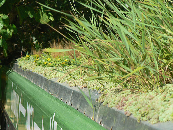 很多人都擔心這樣的植栽會不會讓車子重量變重、耗油更多,其實因為另類的輕質栽培土設計,反而讓這片植披意外的輕巧,加上車頂另外製作的防水設計,不用擔心植物的水份會鏽蝕車體,如果真的每輛車的車頂都裝上這樣的植栽,相信原本製造黑煙的公車也可以幻化成淨化空氣的移動綠地勒!