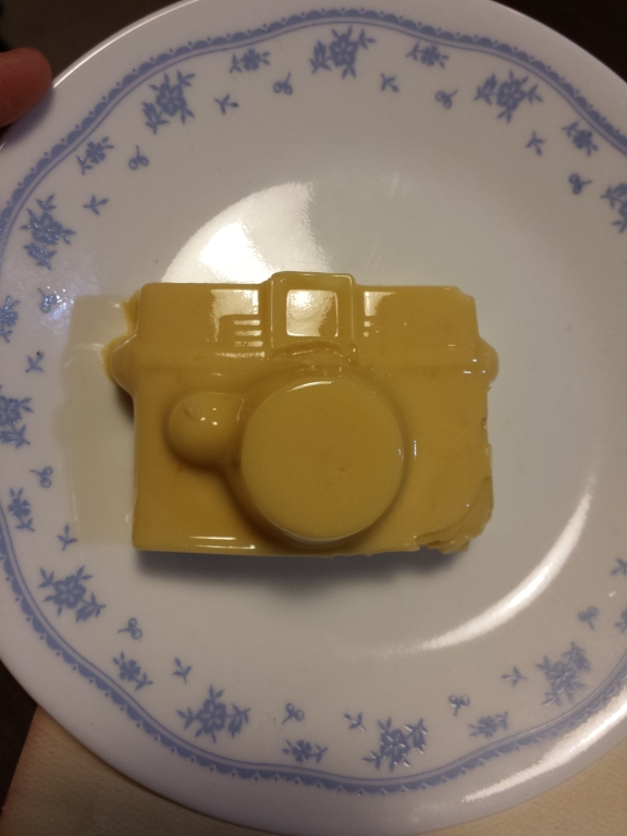 只要到就近的超市或蛋糕店購買布丁粉(什麼牌子都可以),我選擇了芒果味,然後跟著布丁粉包裝上的指示將材料調好變成溶液。最後我加了一些已切粒的新鮮芒果和溶液調勻,再小心倒入已清潔乾淨的相機包裝模具上(你也可選用其他 Lomography 相機 的包裝),然後冰入冰箱中。