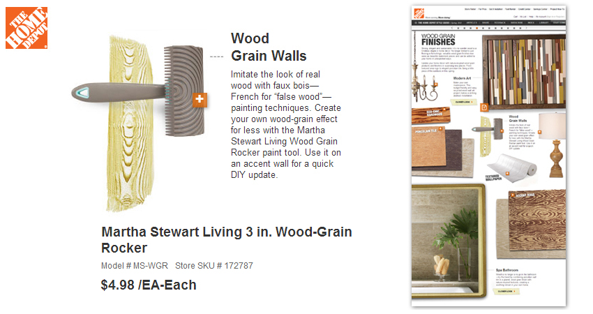 不只是台灣有農曆年前大掃除的習慣,在歐美聖誕節前也是家家戶戶的大掃除季節,來自美國超強居家修繕品牌 Home Depot (類似台灣的特力屋) 日前在官網上發佈一系列「木工手作創意工具」,其中引起網友瘋狂轉載的這把神奇木紋刷,正是出自 Martha Stewart 的自有品牌 Martha Stewart Living 3 in. Wood-Grain Rocker,每把售價美金 $4.98,約新台幣 NT$150 有找,可惜不提供網路訂購,只有在實體門市販售,要不是開車沒辦法到美國,不然我們就馬上衝去買了。