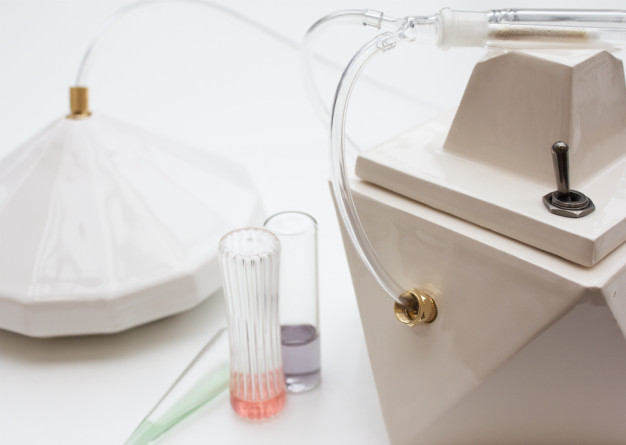 倫敦設 計師 Amy Radcliffe 新發明、氣味相機 Madeline,不僅讓嗅覺能被保存,還能複製再造。Madeline 是採香水製作的頂空吸附技術(Headspace Capture),以玻璃罩聚集想保留氣味的空氣,再透過管線輸送至氣味捕捉瓶,內含的聚合樹脂可以吸附氣味。