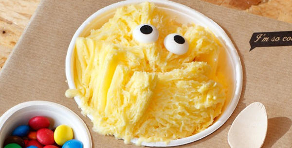 在西班牙有一間超可愛的冰品店「Eyescream and Friends」,主打改造來自台灣冰品:「雪花冰」當做主要販售的吸引點,這間由設計工作室「Estudio M」一手打理起來的冰品店,裡面的冰不只顏色繽紛口味豐富之外,還會在冰品製作完成之後放上兩個可以食用的小眼睛,瞬間讓吃冰的人充滿憐惜之情不忍吃下,並且命名為『Eyescream』,大玩諧音的樂趣XD